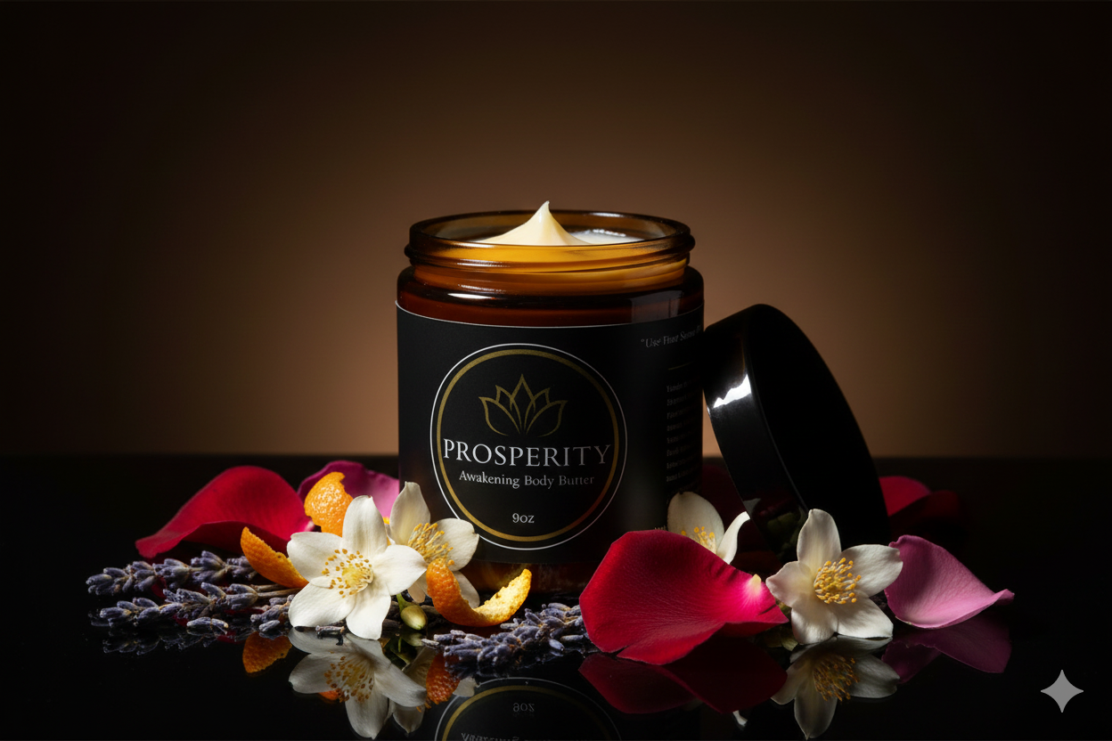 Most body butters smell nice. Prosperity Butter is formulated with 15+ essential oils chosen not for decoration — but for what they do to your nervous system.